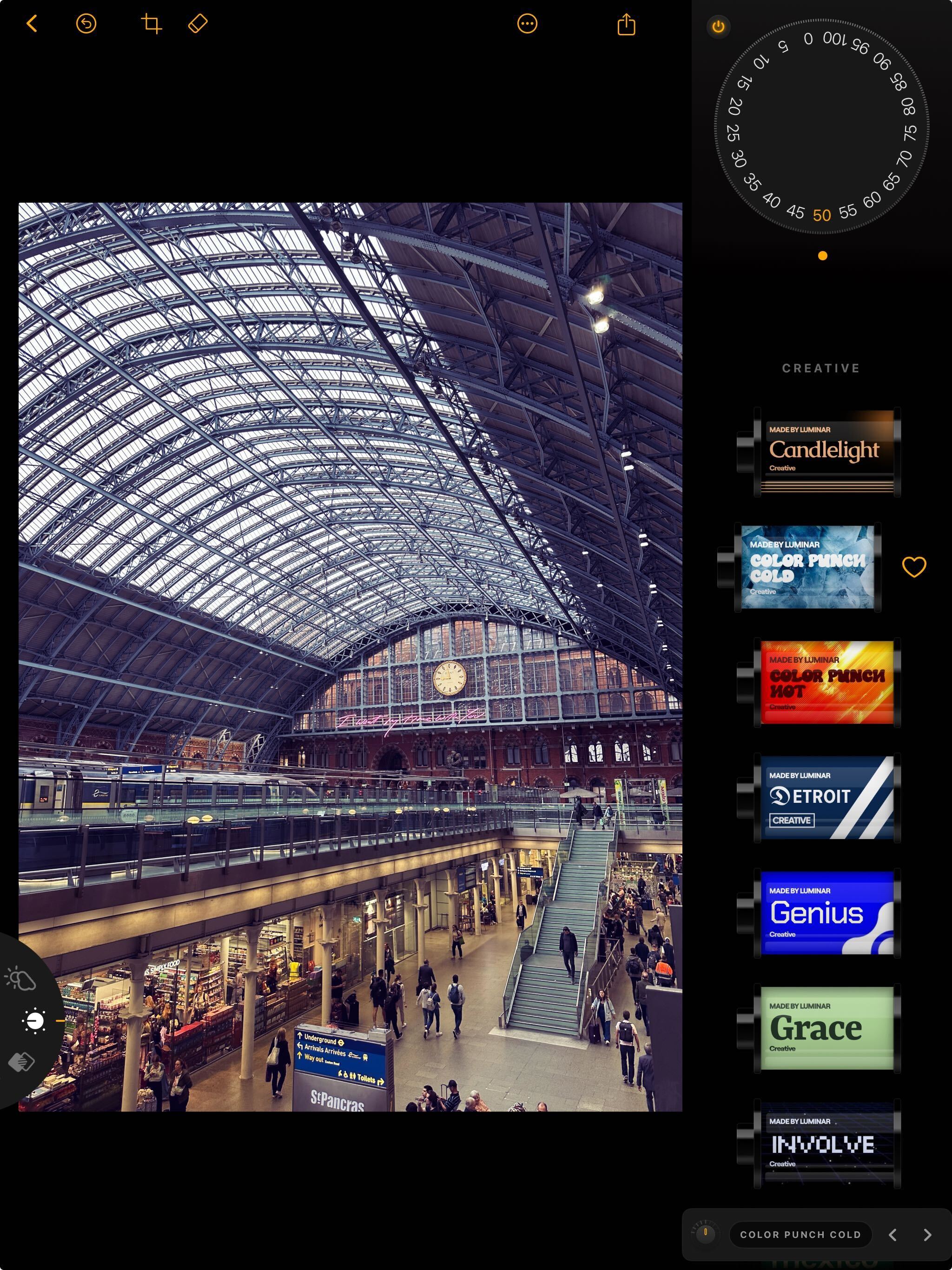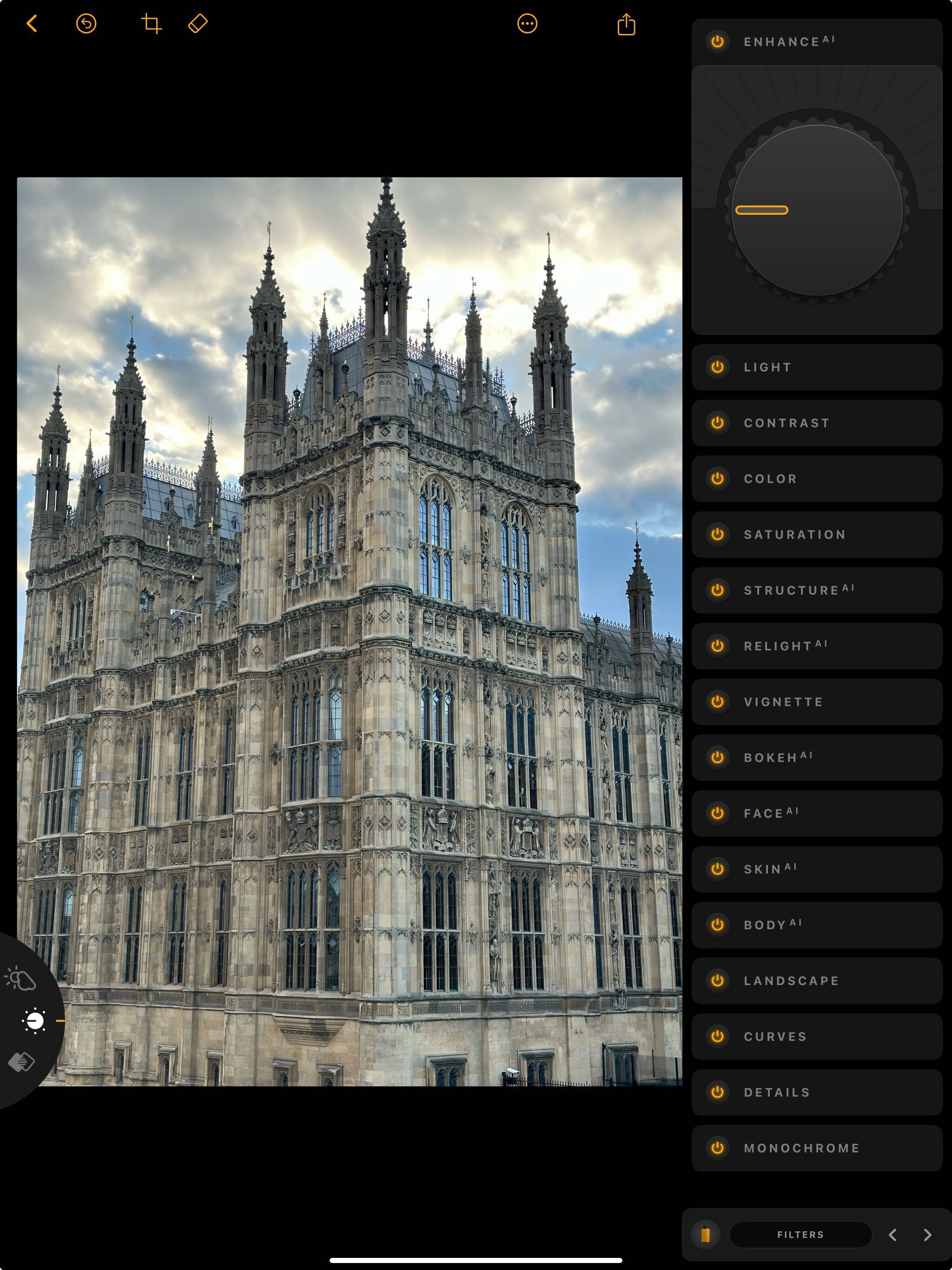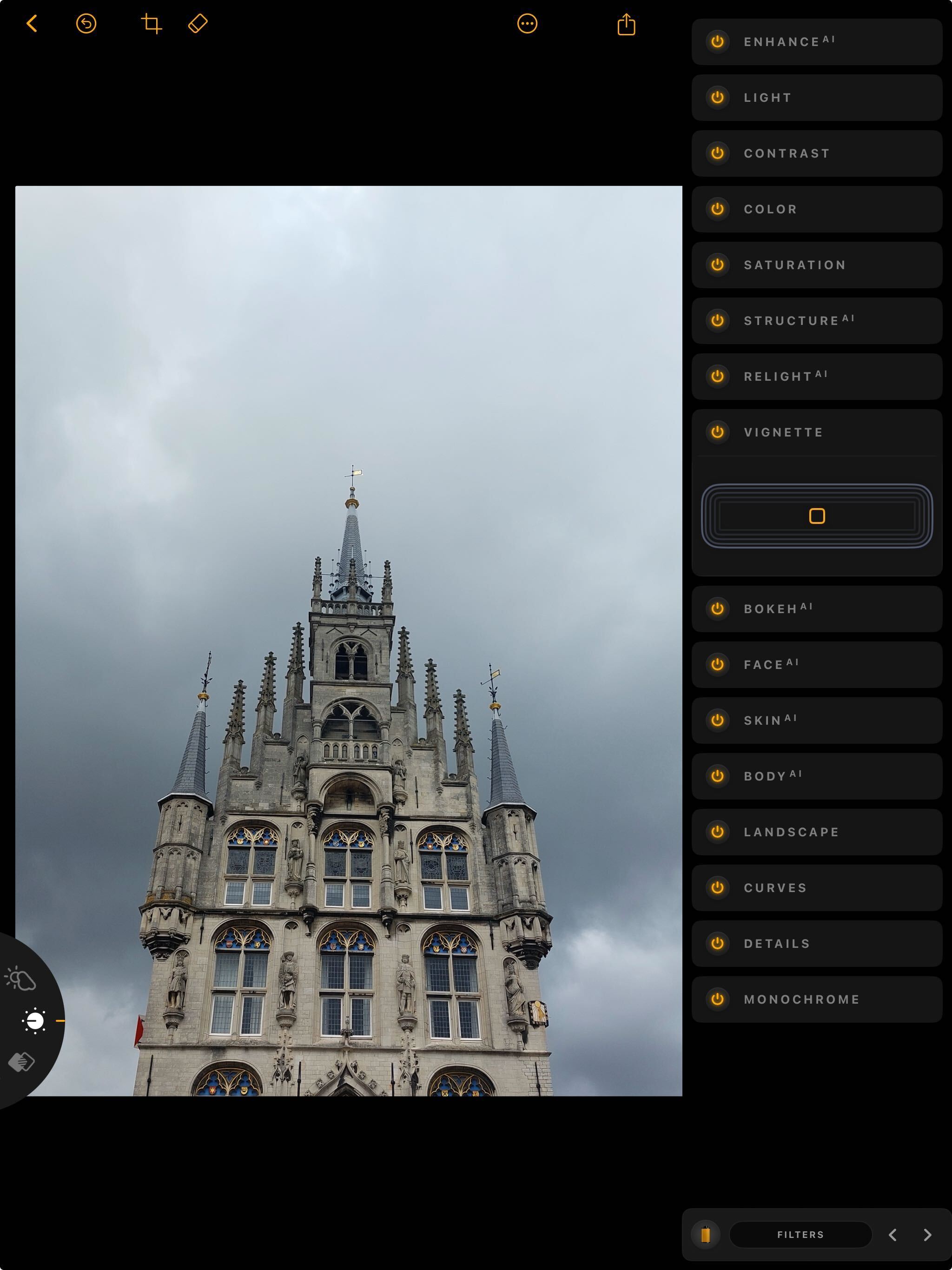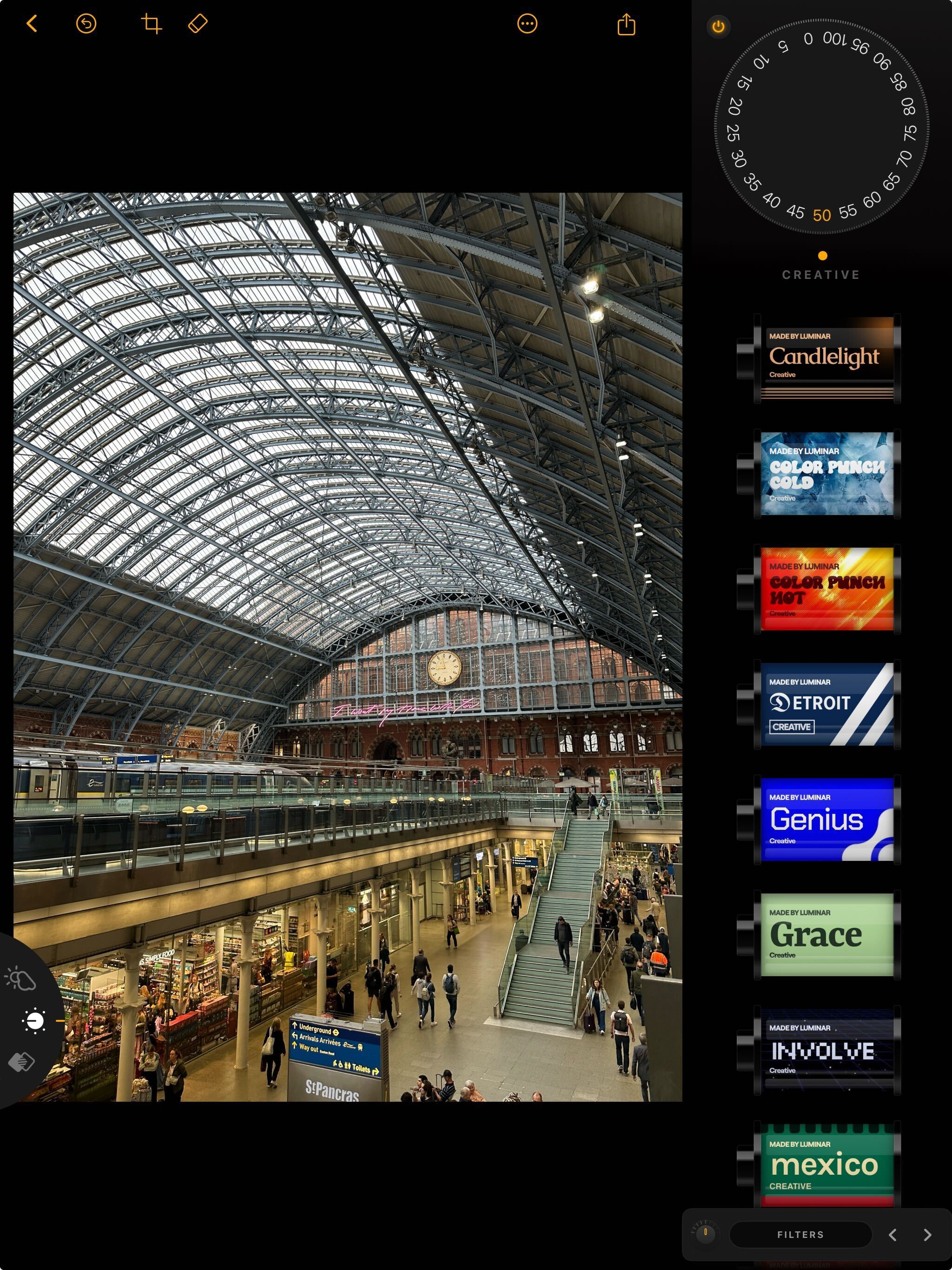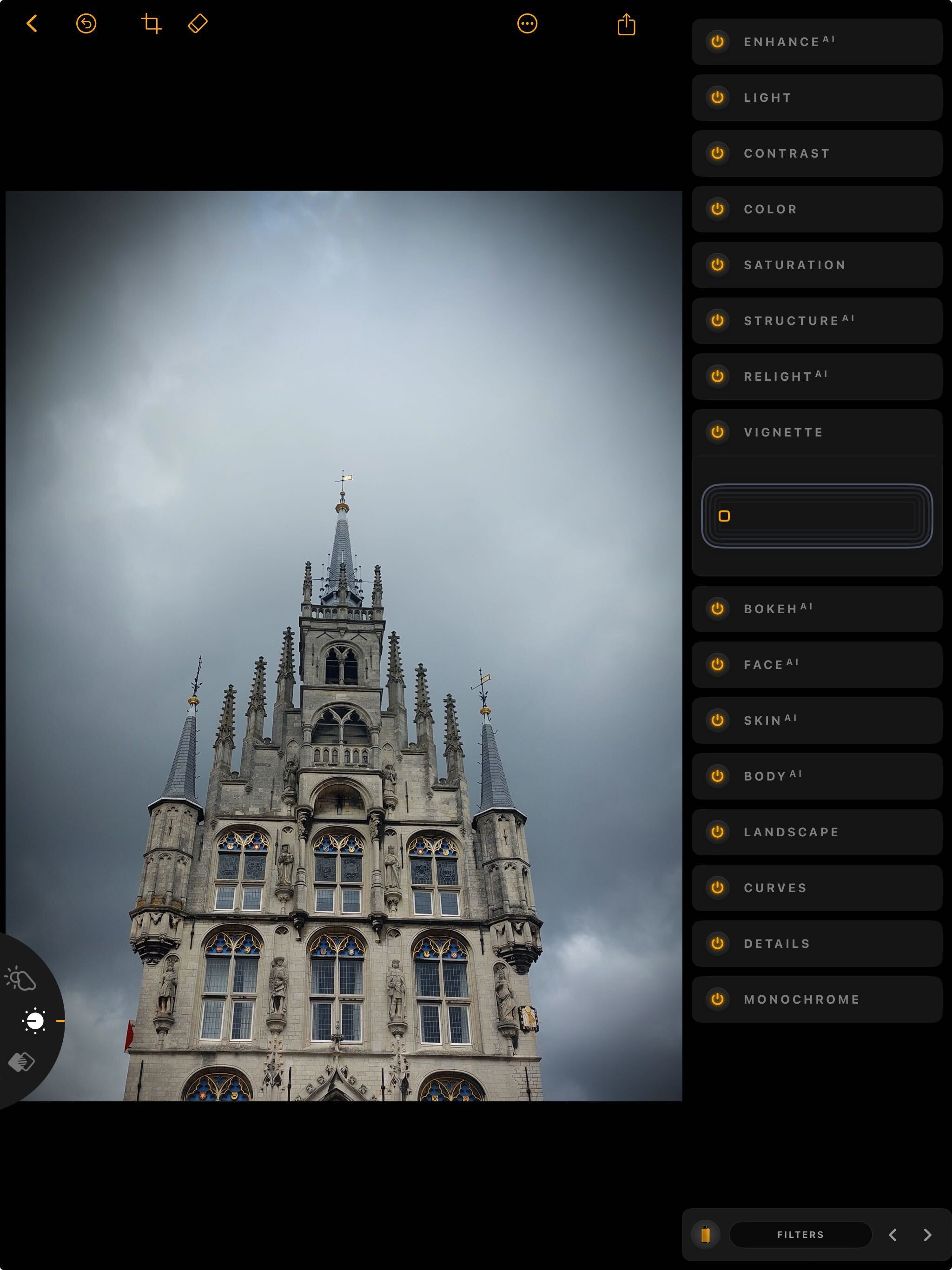 Filters in Luminar provide a quick way to enhance your images. Scroll, select, and apply filters to change the mood or tone with a tap. Adjust intensity for the perfect effect and save favorites for quick access, making photo enhancement effortless.
