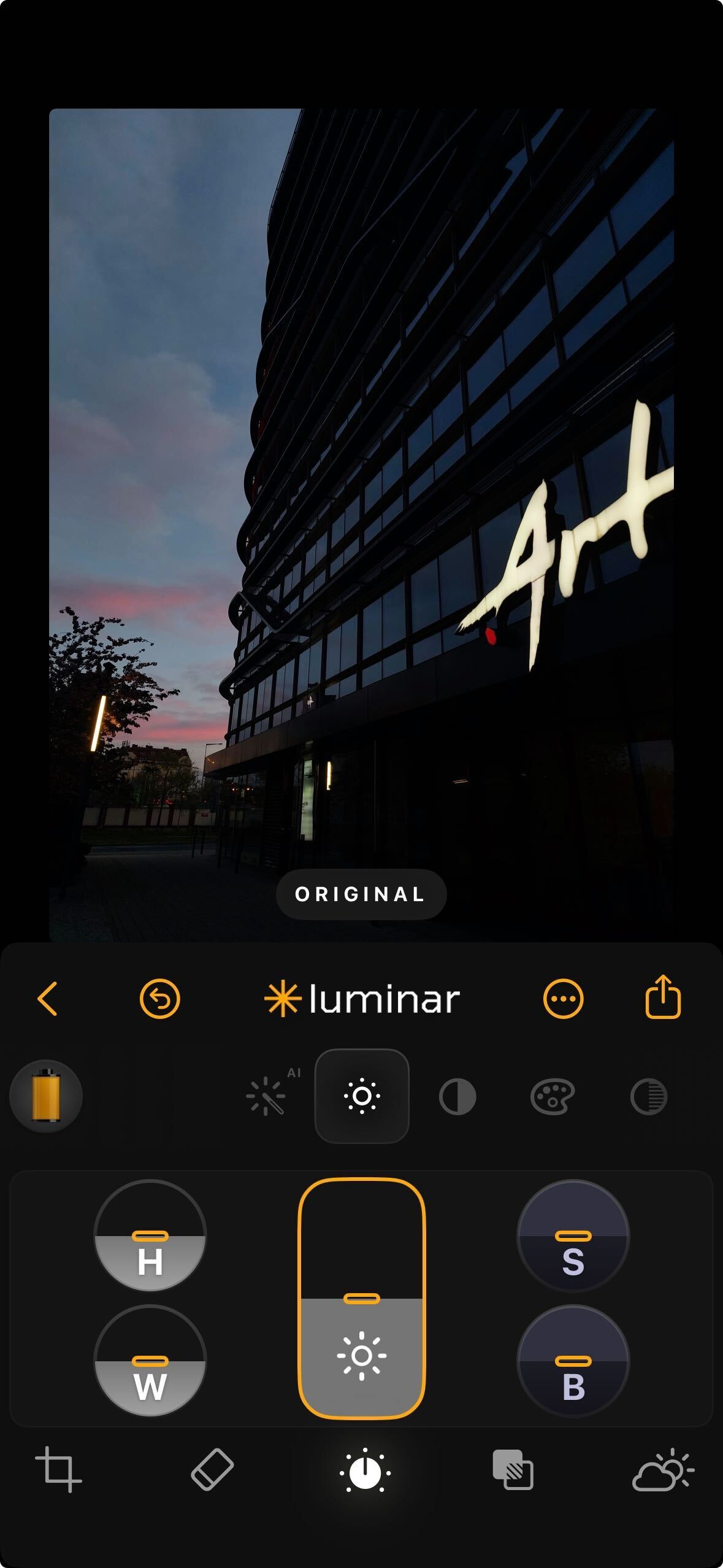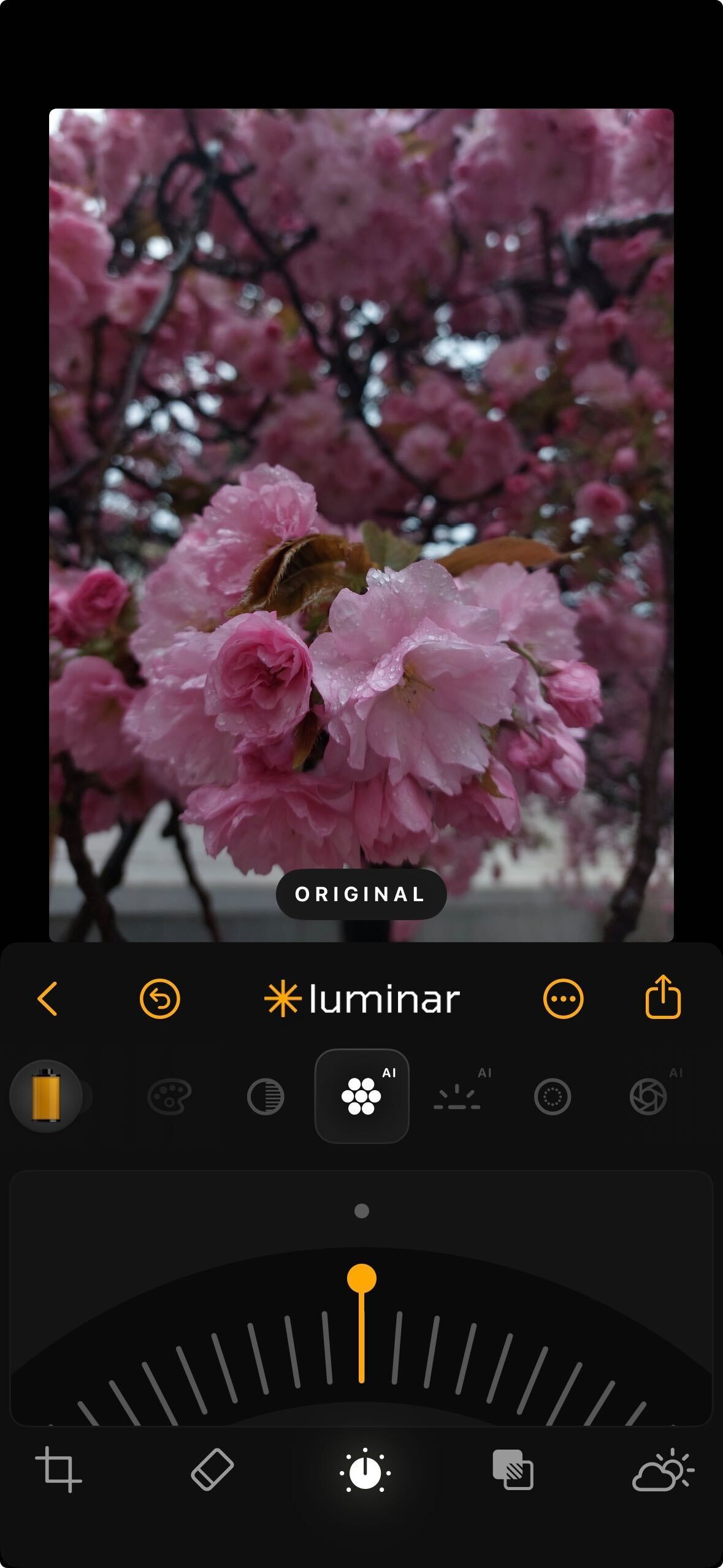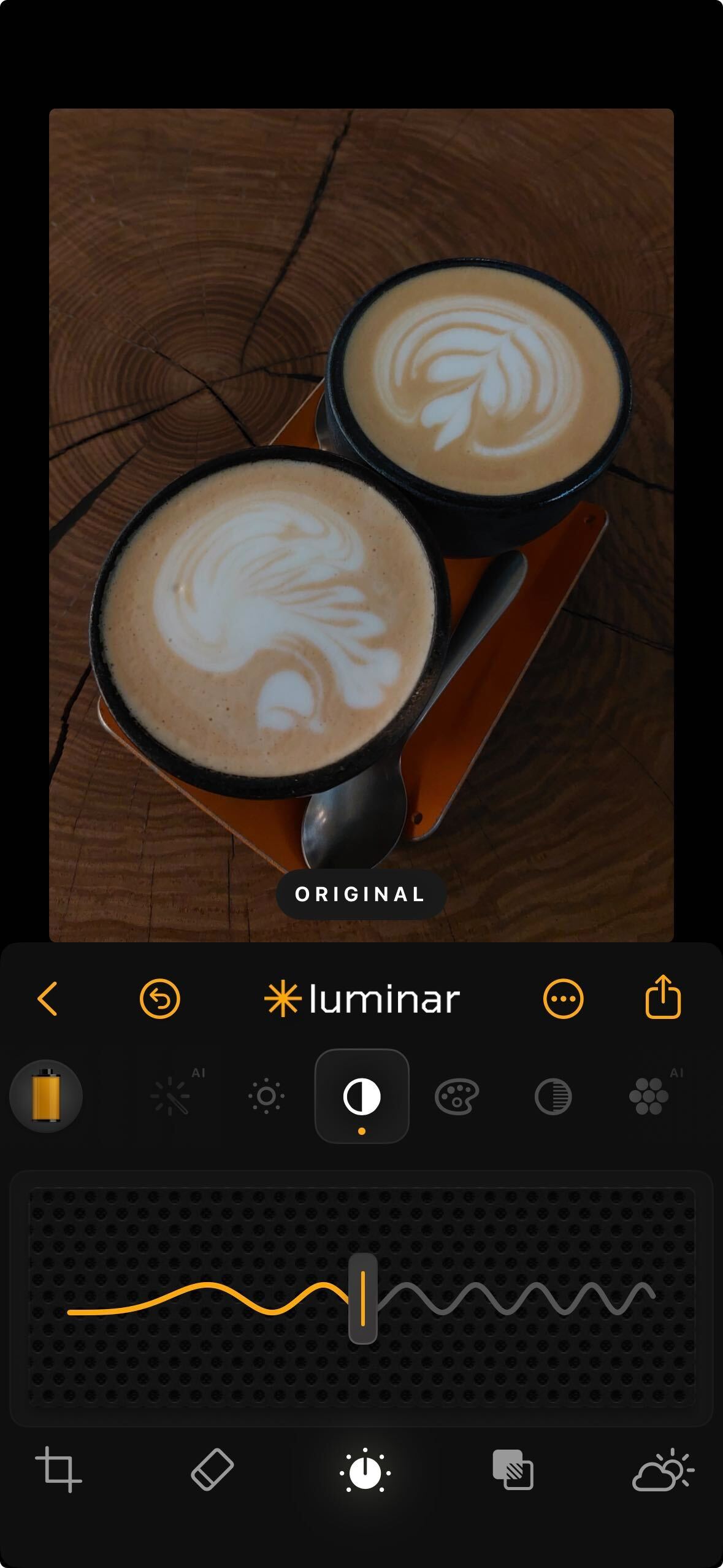 * **Golden Hour** – Adds warm, amber tones to mimic sunset lighting. Drag the slider to the right to increase the warmth.