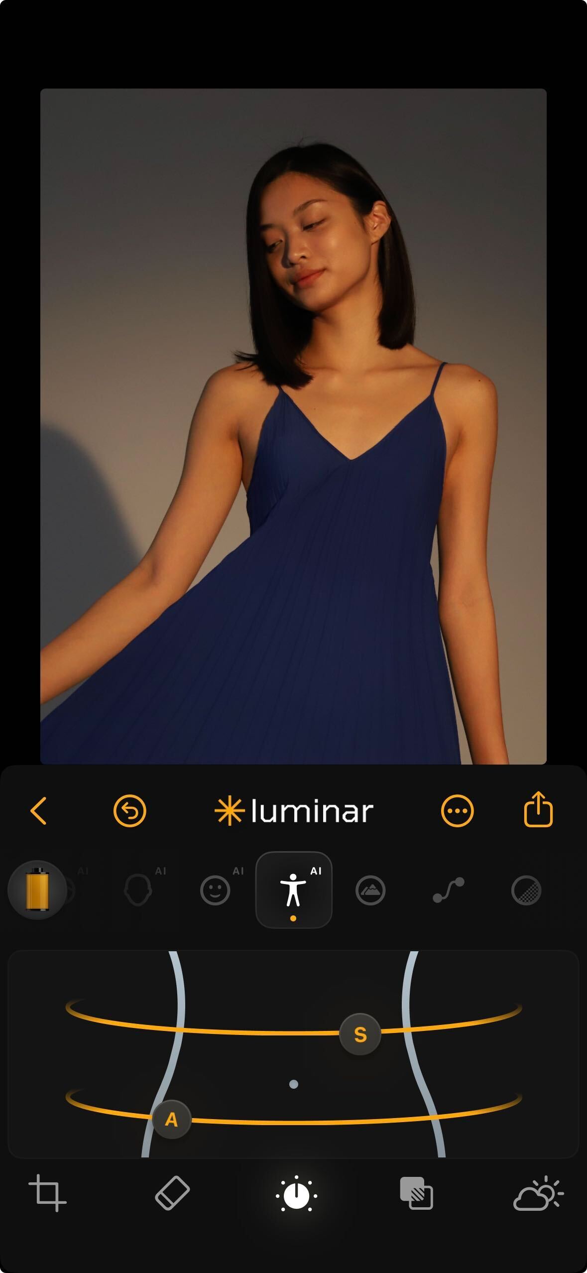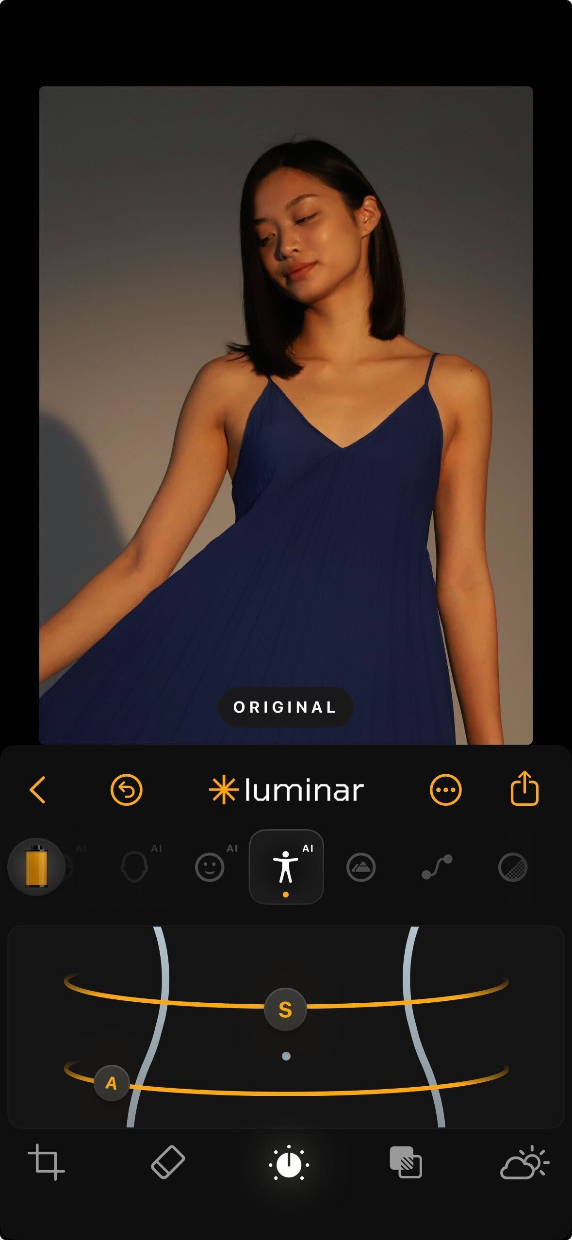 **How to Use:** Tap the Body AI icon when editing an image with a visible body. Slide A and S to gently refine shape.