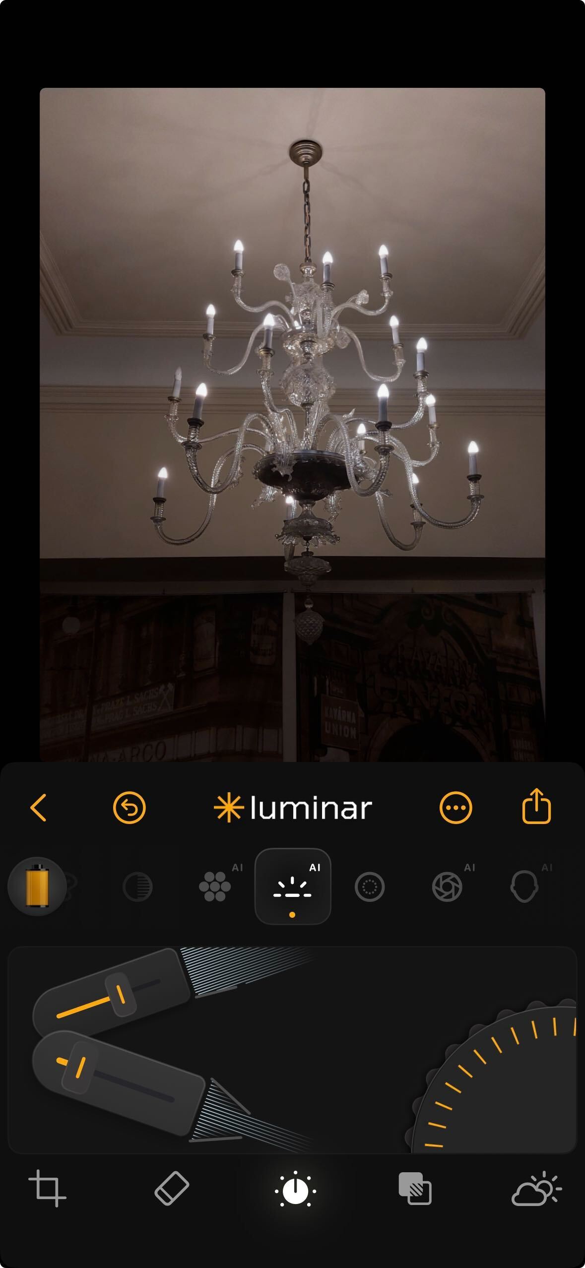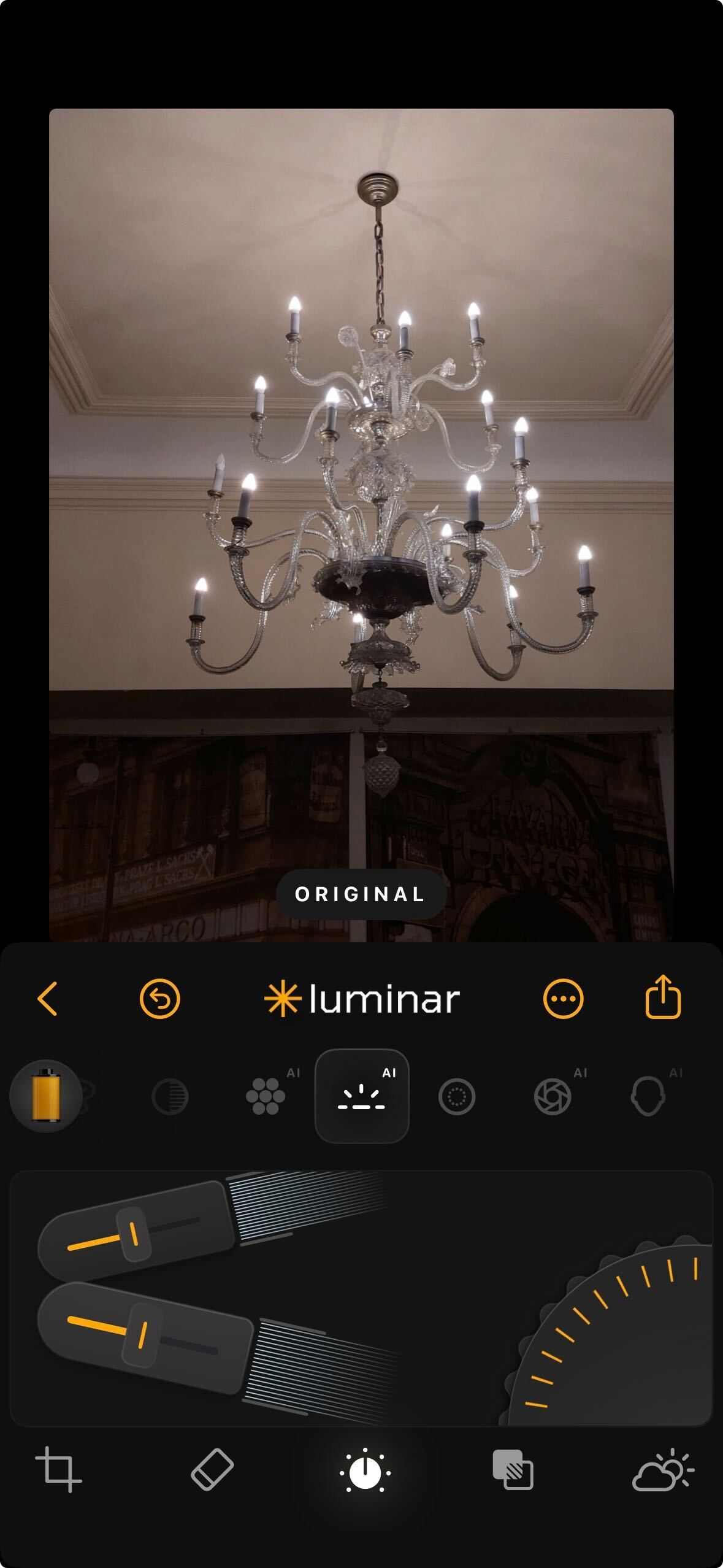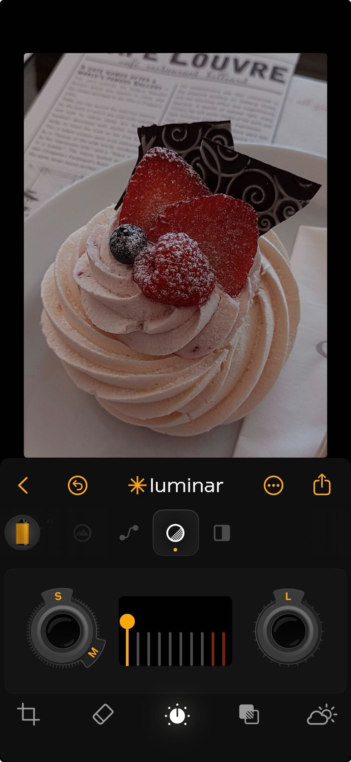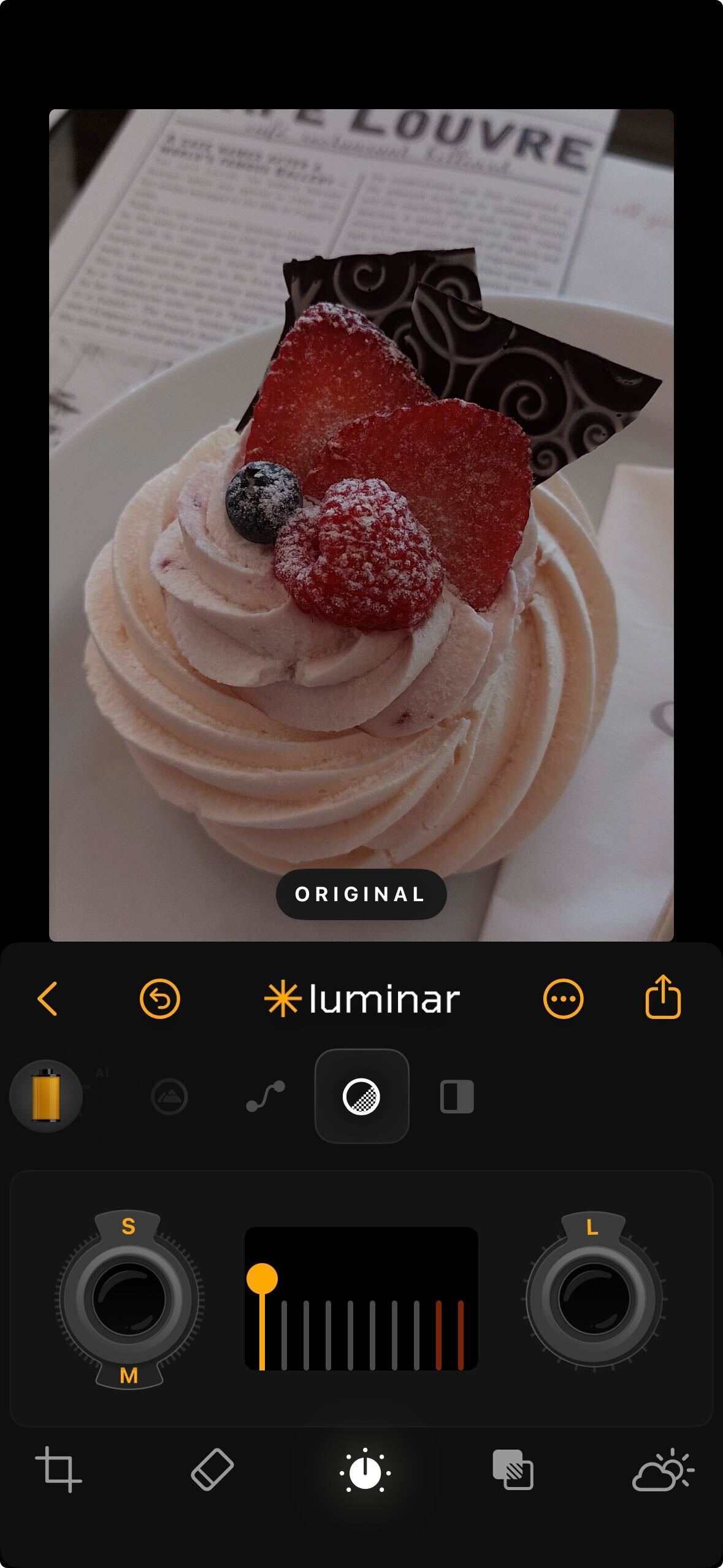**How to Use:** Tap the Light icon, then tap any sub-tool you wish to adjust. Use the slider to move up or down and control the effect. Each setting responds independently, giving you precise control over the tonal balance of your photo.