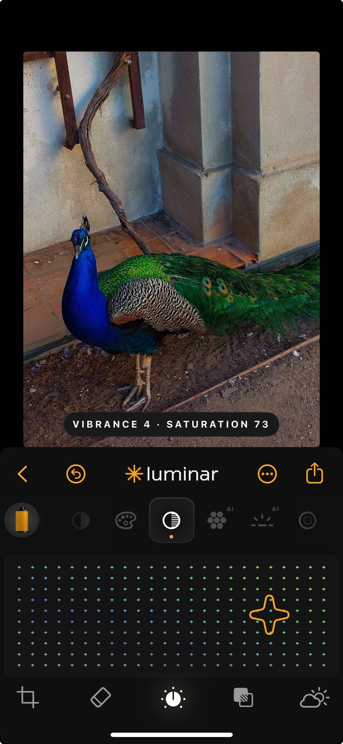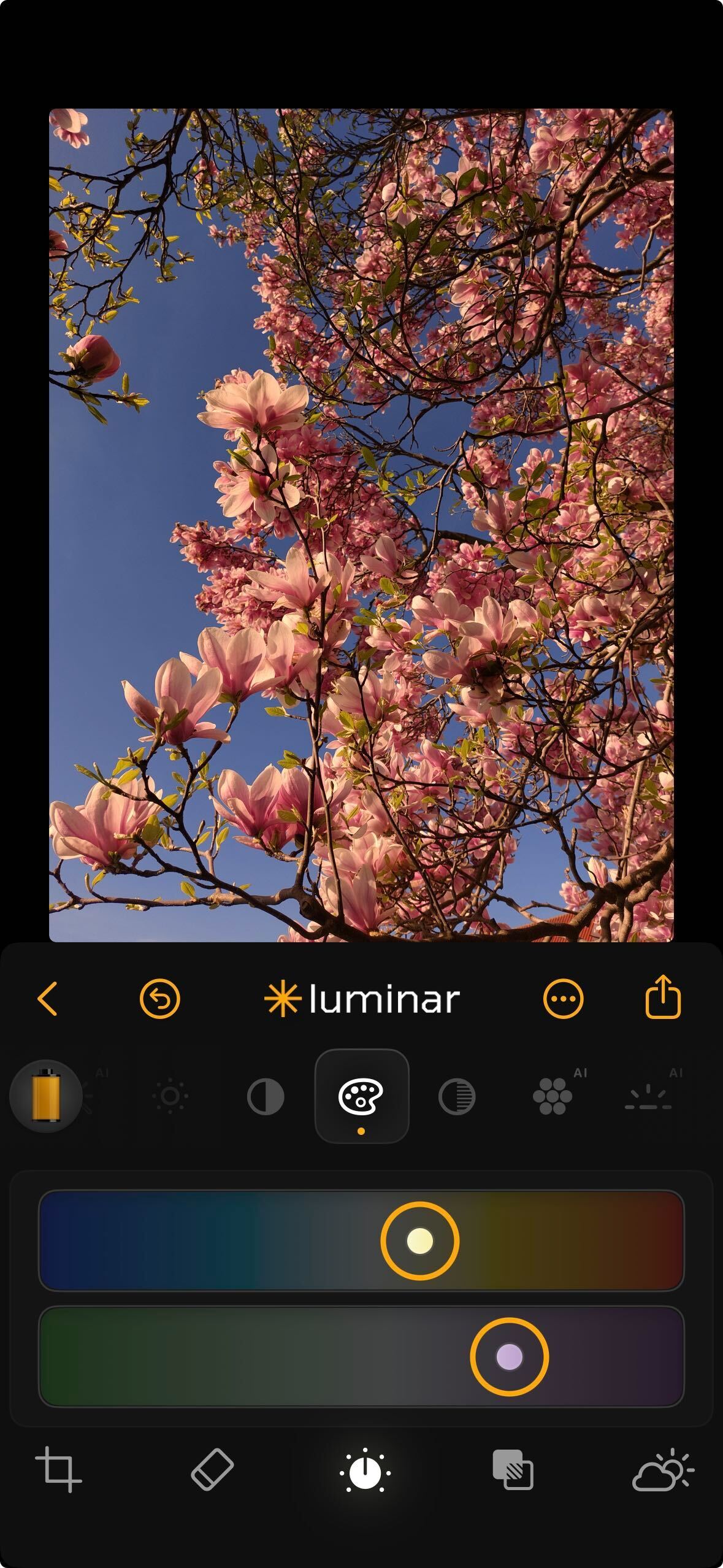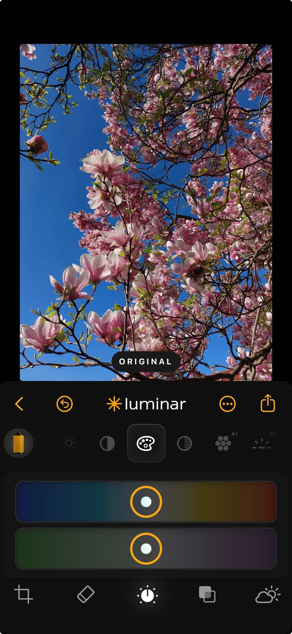 **How to Use:** Tap the Color icon and use the sliders to shift temperature and tint.