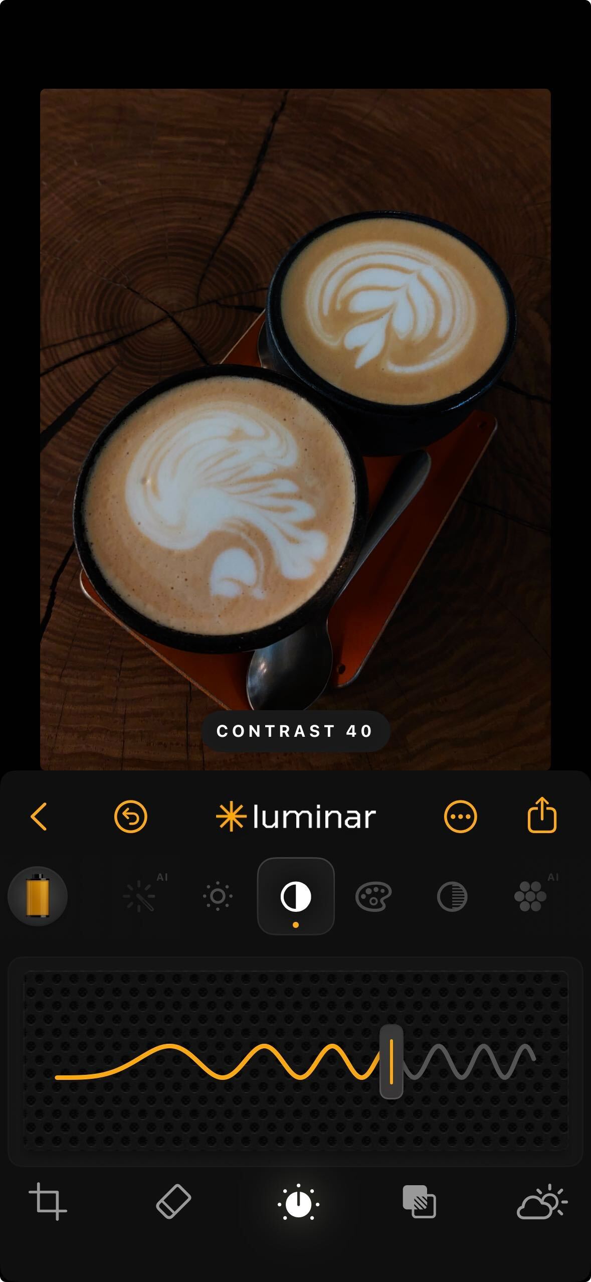 **How to Use:** Tap the Contrast icon, then drag the slider.